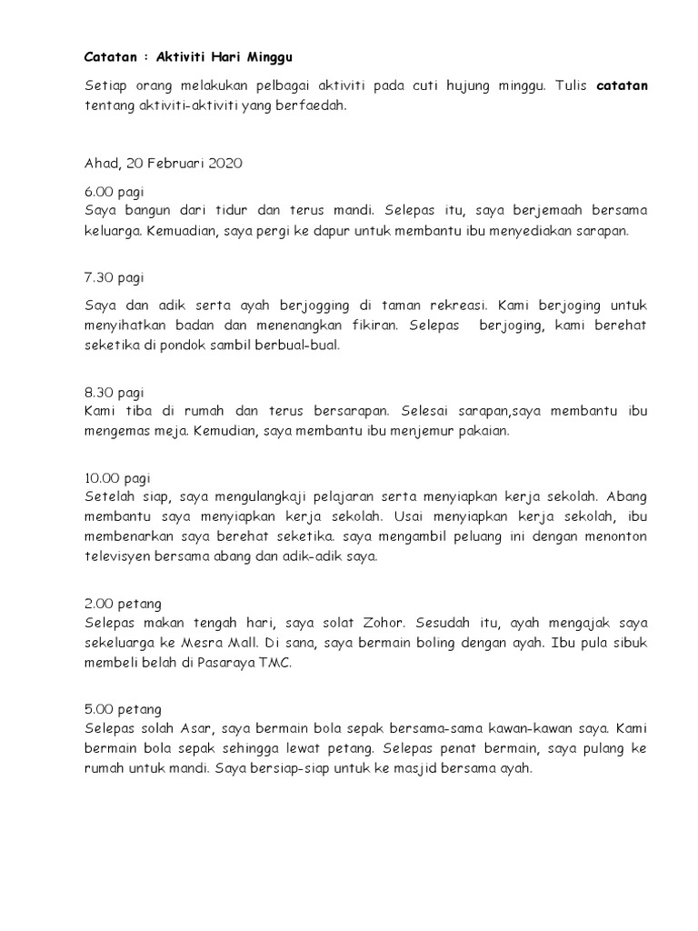 0 Response to "Contoh Karangan Tentang Aktiviti Hujung Minggu"